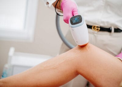 Die Zone wird vorbereitet, anschließend wird der Laser gezielt eingesetzt. Wir arbeiten mit passenden Einstellungen und achten auf Hautschutz und Komfort.